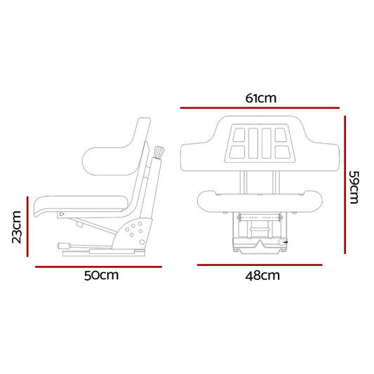 Giantz Tractor Seat Forklift Excavator Universal Suspension Armrest Truck Chair