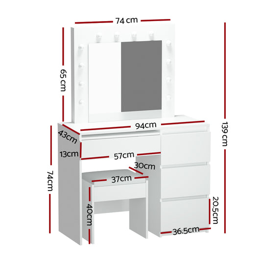 Artiss Dressing Table Set Stool 10 Led Bulbs White Dylan