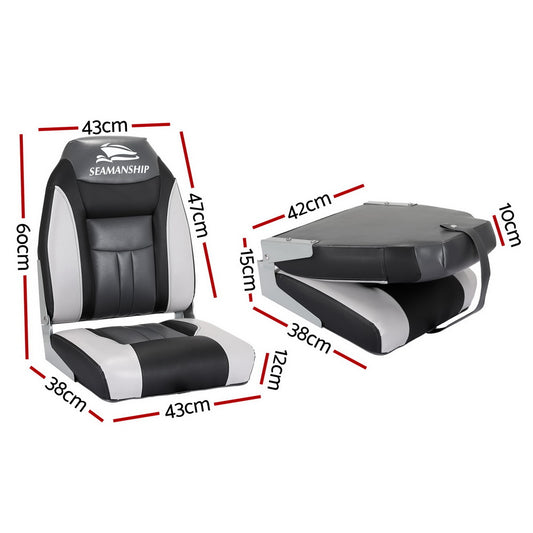 Seamanship 2X Folding Boat Seats Marine Seat Swivel High Back 12cm Padding Grey