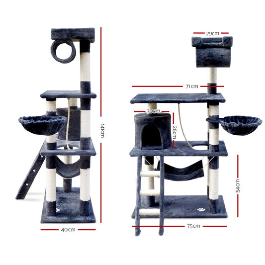 i.Pet Cat Tree 140cm Tower Scratching Post Scratcher Trees Toys Condo Bed Grey