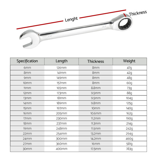 Giantz 17pcs Ratchet Spanner Set Metric 6MM-30MM