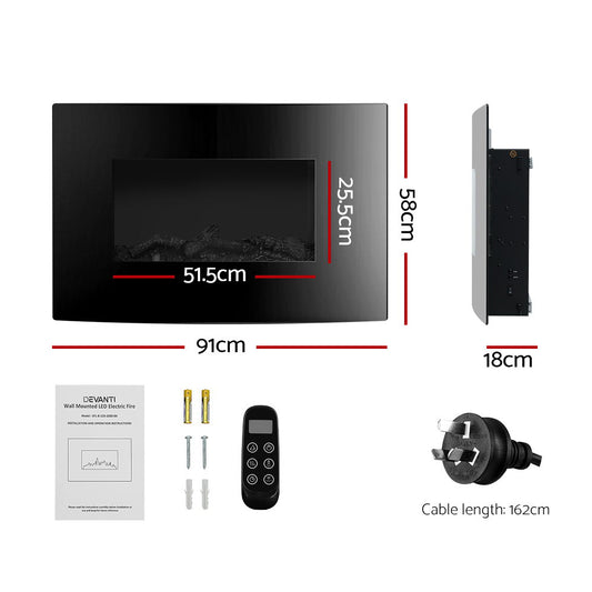 Devanti Electric Fireplace Fire Heater 2000W Black