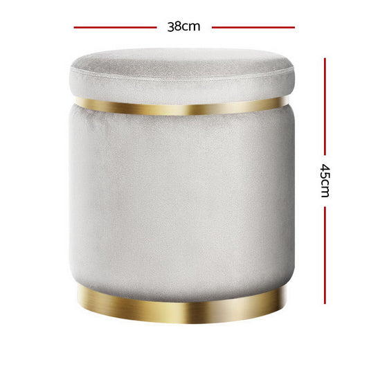 Artiss Ottoman Foot Stool Round Velvet Grey