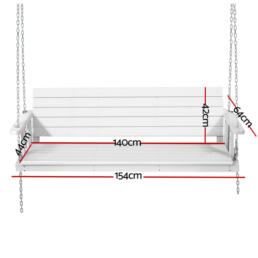 Gardeon Porch Swing Chair with Chain Garden Bench Outdoor Furniture Wooden White