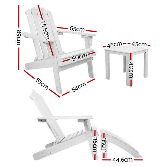 Gardeon 5PC Adirondack Outdoor Table and Chairs Wooden Sun Lounge Patio Furniture White