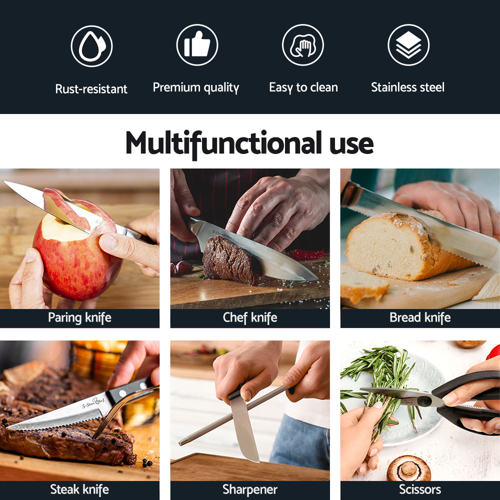 5-Star Chef 14PCS Kitchen Knife Set Stainless Steel Non-stick with Sharpener