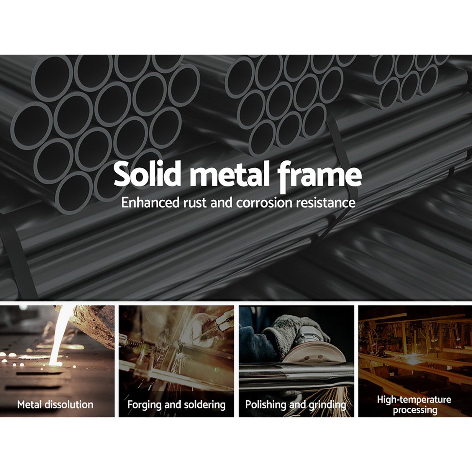 Metal and wood in perfect harmony. Our Dane Bed Frame is truly a stylish addition to any bedroom. Simple in design, the bed frame is meticulously constructed in sturdy steel and 15mm thick MDF with PVC for durability and strength. The sleek black powder-coated steel and dark wood accents lend real industrial cred to your bedroom for some standout décor. Across the frame, evenly spaced slats provide good weight distribution as well as ensuring that the mattress stays in place even with every twist and turn of your sleep. The central support beam further steadies the bed under robust use. Designed to fit standard size mattresses effortlessly, our eclectic bed frame is guaranteed to give you pleasant dreams with every sleep.