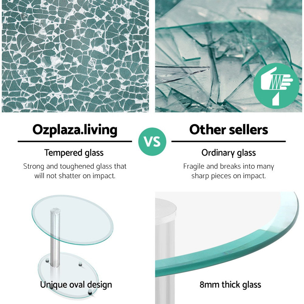 Artiss Coffee Table Round Tempered Glass Side End Beside Tables Cafe 45cm