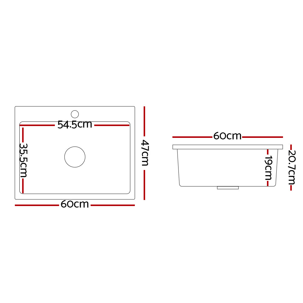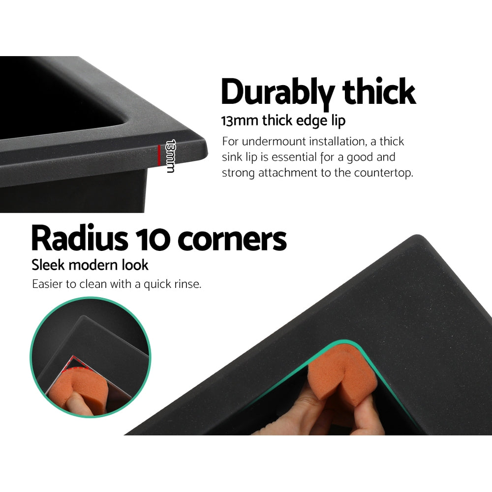 Cefito Kitchen Sink Granite Stone Sinks Basin Single Bowl Black 600mmx470mm