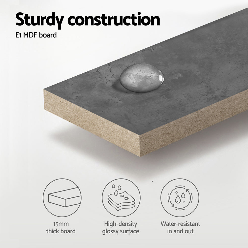 Add a touch of industrial to your bathroom with our Cefito Bathroom Vanity Unit. With its 15mm thick eco-friendly E1 standard MDF construction with melamine finish, the vanity unit looks absolutely flawless and feels strong and stable with everyday use. On top, the crystalline nano-glaze ceramic basin is smooth and highly resistant to scratches, leaks and bacterial growth. Better still, there is ample room for all your bathroom essentials inside with the two deep drawers. Not least, the two-tone cement-effect cabinet and white basin colour combination is a definite plus for your modern bathroom.