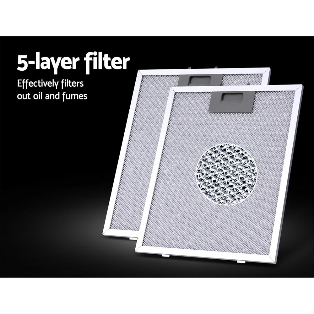 Say goodbye to smoky fumes and unwelcomed cooking odours with the Devanti Range Hood. With its high-performance motors, the black powder-coated steel range hood provides a steady upflow and filtered extraction of fumes and oil to keep your cooktop area clean and fresh after every use. With its 3-speed rocker button switches, the extraction speed can be adjusted to suit the circumstances. Other features include two non-stick 5-layer aluminium filters that are removable and replaceable and