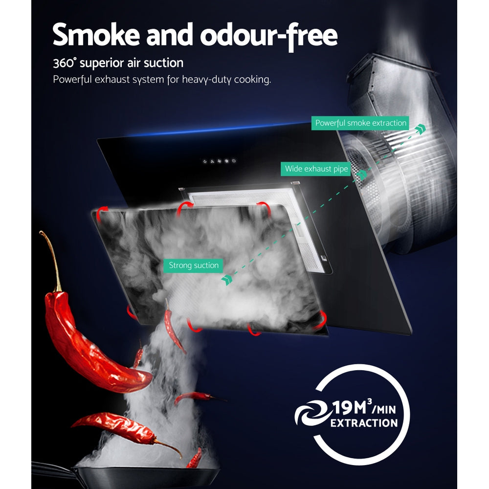Devanti 900mm Range Hood 90cm Rangehood Glass Black