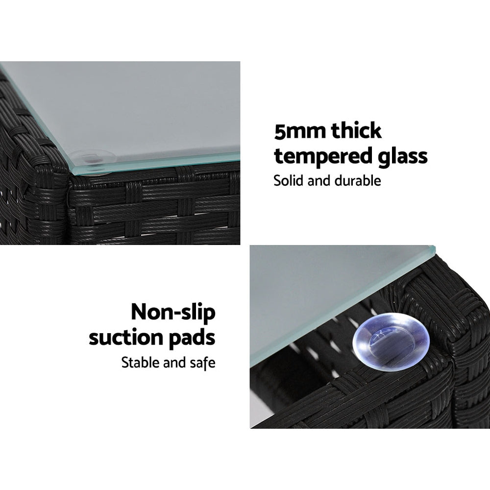 Meticulously crafted, our Gardeon 4-piece Rattan Outdoor Set comprises two armchairs, a two-seater and a matching table for a beautiful integrated look. Its presence will definitely add panache and style to your deck, patio or even living room. Made of PE wicker and a sturdy steel frame, this set is designed to last through all weather and the test of time. The 5mm thick tempered glass top with non-slip suction pads for the table also ensures strong and safe use with total peace of mind. Not least, the cushion covers are removable and washable to maintain their pristine appearance. There is even a bonus storage cover included for you to protect the set from sun and rain when not in use, so that you can keep enjoying your garden parties for many years to come.