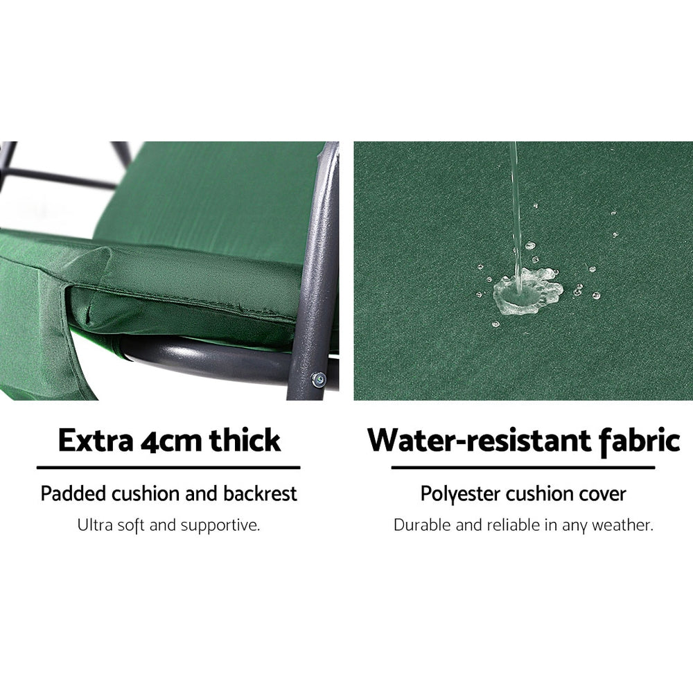 Gardeon Outdoor Swing Chair Garden Bench Furniture Canopy 3 Seater Green