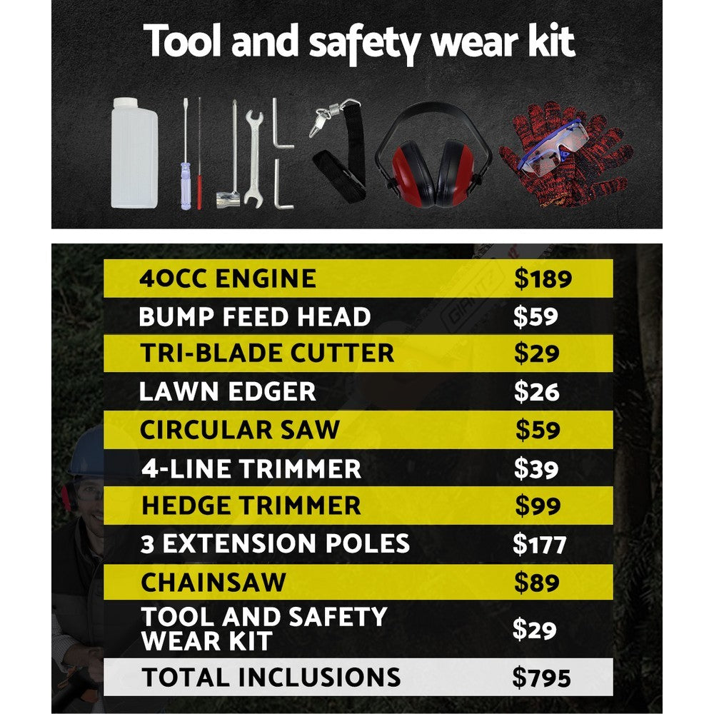 Giantz 40CC Pole Chainsaw Hedge Trimmer Brush Cutter Whipper Saw 4-Stroke 9-in-1