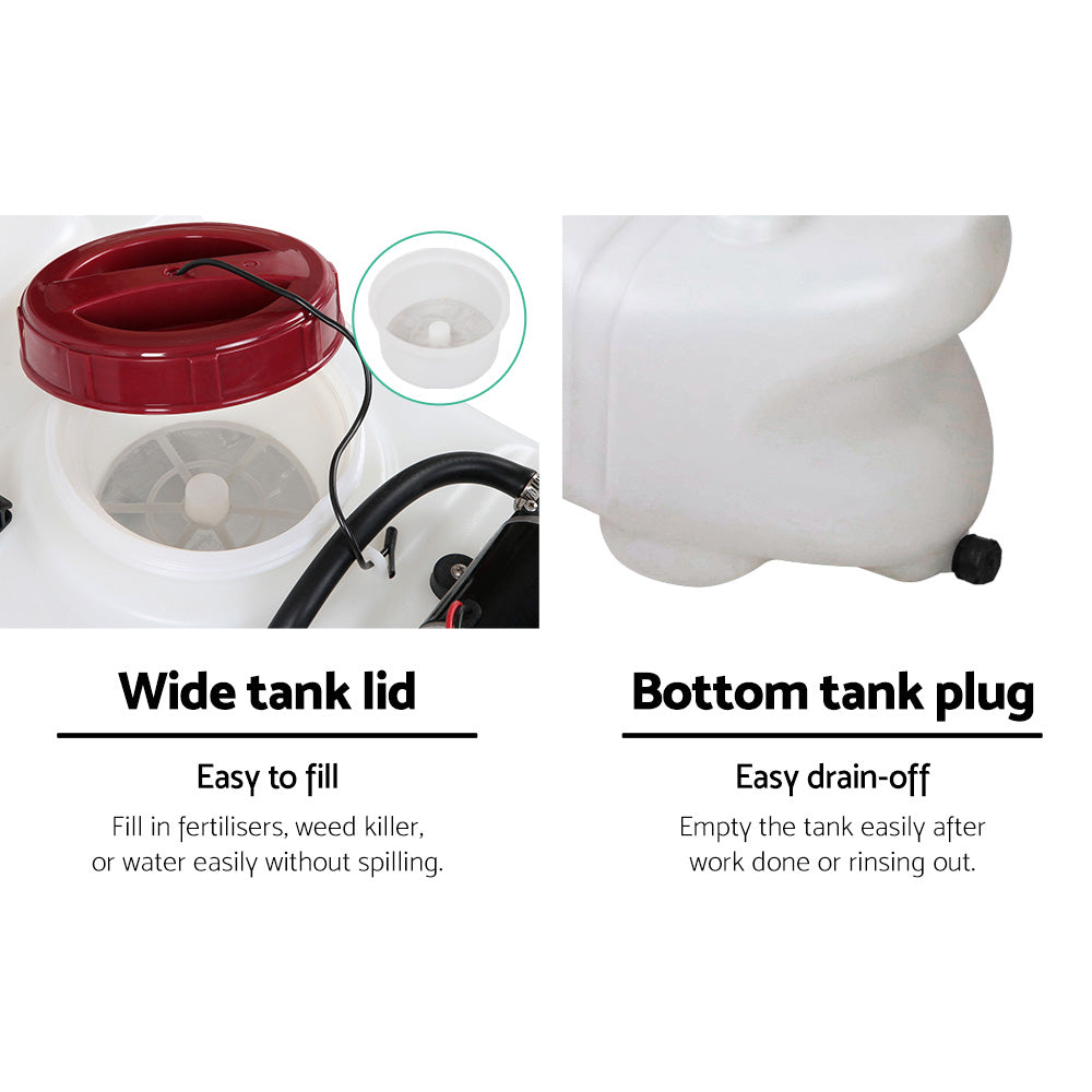 Including a 5m chemical grade hose and rear boom sprayer, it allows you to do broad spraying while hand-held spray nozzle to do spot spraying while riding or walking. This weed sprayer is built with UV stable, to withstand under the operation of heat and sun of Australian weather. A great mobile solution to pest and weed treatment for your home, garden and farm.