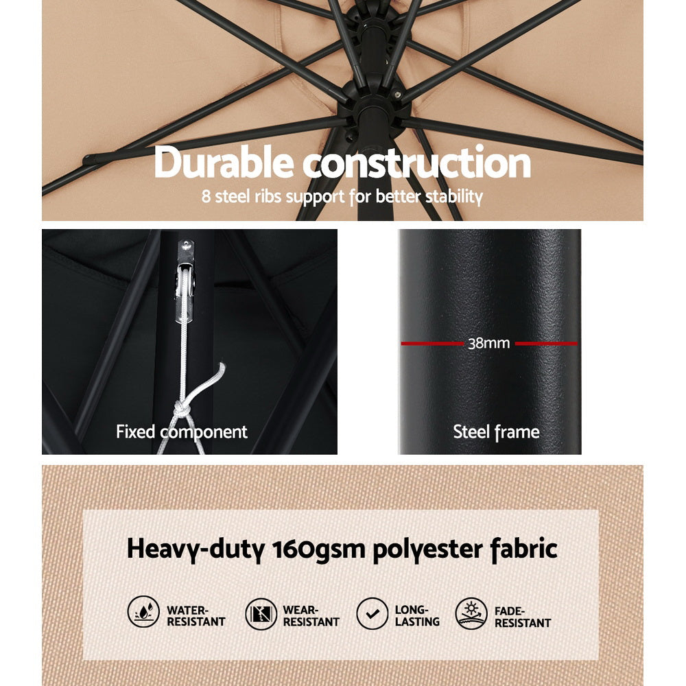 Instahut 3m Outdoor Umbrella w/Base Pole Tilt Beach Garden Patio Beige