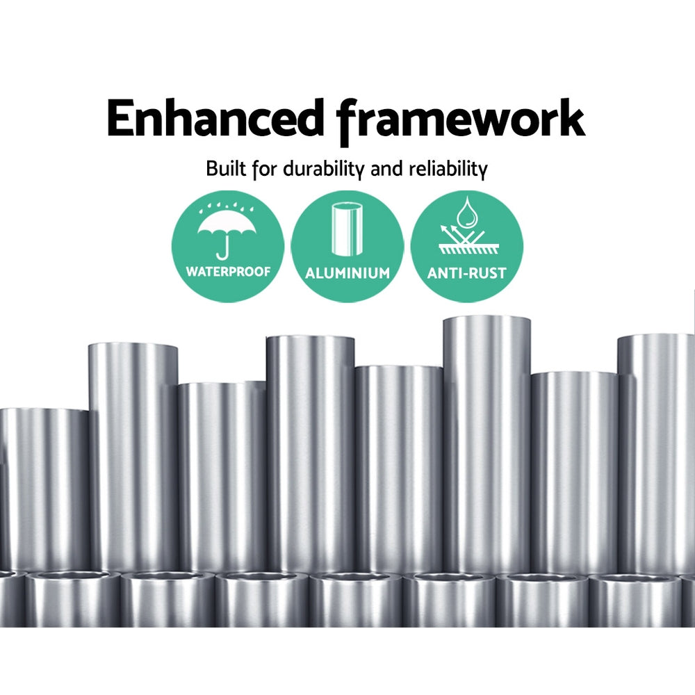 Measuring 3m x 2.5m, our folding arm awning comprises a powder-coated aluminium frame and a high-quality 300gsm polyester fabric shade. Both frame and shade are made UV-resistant and designed to be durable and longlasting in all kinds of weather conditions(Only for normal weather condition,extrem weather condition is excluded).
